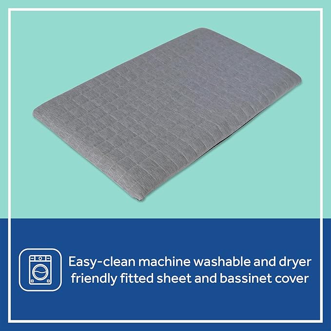 - Easy To Clean For Busy Parents - Removable fitted sheet and bassinet cover are machine washable and dryer friendly. Waterproof mattress pad wipes clean in seconds, ensuring a fresh and hygienic sleep space for baby.