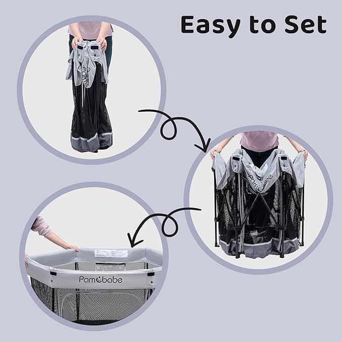 - SAFETY & BREATHABLE: The baby playpen has a sturdy hexagonal frame, and breathable clear mesh walls.