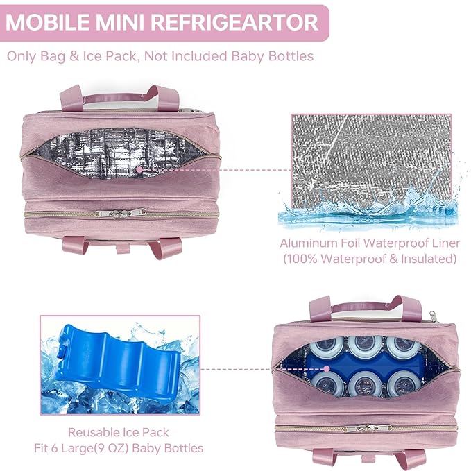 - MORE PRACTICAL: Our bottle bag for daycare is designed for maximum convenience, It features a detachable buckle top handle can to attach to a stroller, Additionally, pump bag comes with a PEAV waterproof mat and an ice pack