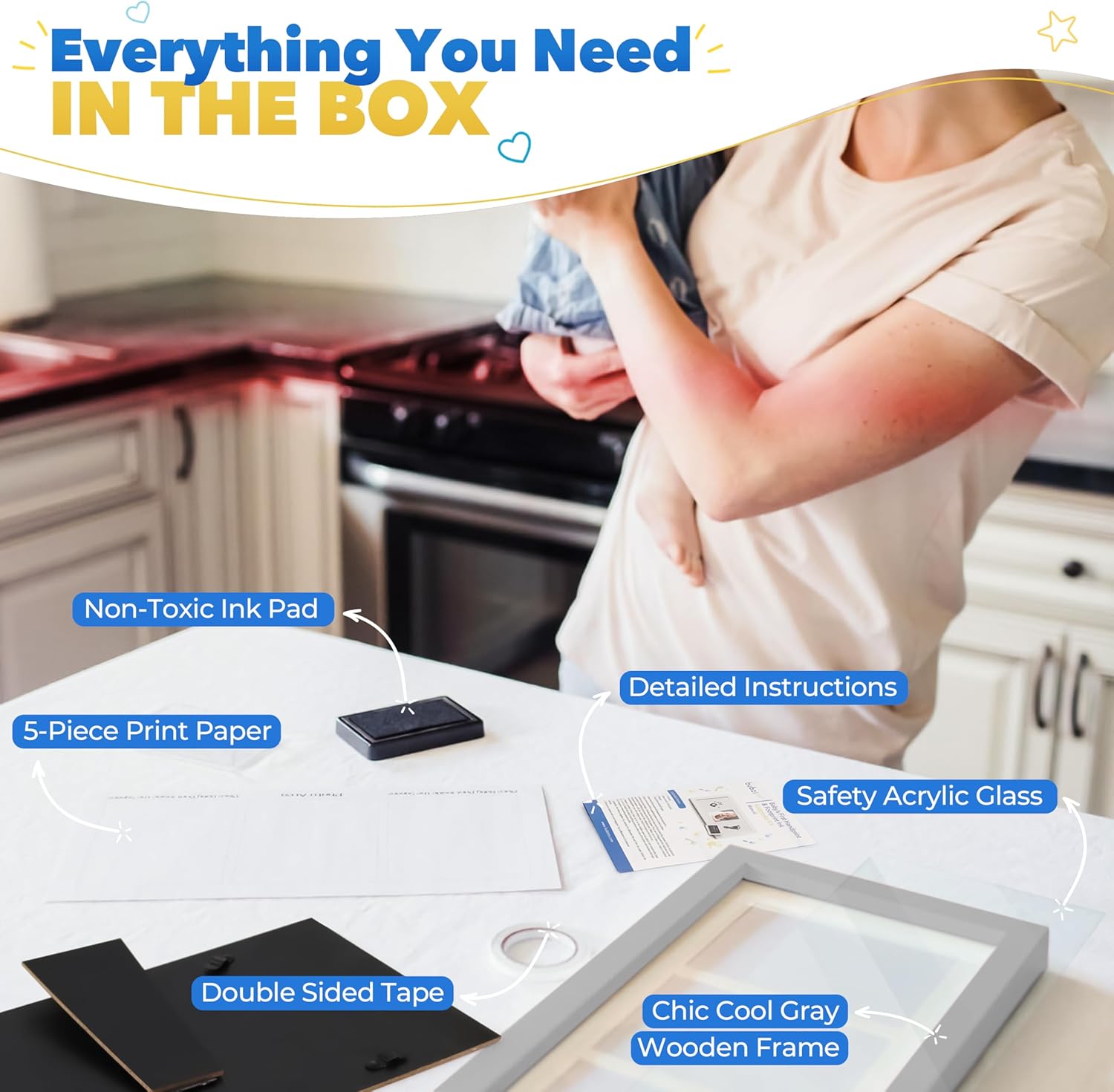 Bubzi Co Baby Handprint Kit & Footprint Photo Frame for Newborn Girls and Boys, Unique Baby Shower Gifts Set for Registry, Memorable Keepsake Decorations for Room Wall or Nursery Decor (Cool Gray)