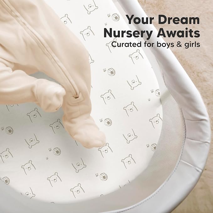 2-Pack Organic Bassinet Sheets for Girls, Boys - 100% Cotton Bassinet Mattress Sheets Compatible with Halo Bassinest Swivel Sleeper, Graco, Baby Delight, Chicco, Fitted Bassinet Sheets (Bumble Bear)