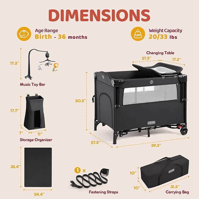 - Adaptable Growth Design: Cater to your growing child with our two-tier bassinet, suitable from birth up to 36 months. The top tier supports newborns up to 20 pounds, and the spacious lower level accommodates up to 33 pounds, ideal as your toddler approaches three years. The changing area remains secure for use up to 6 months or 20 pounds
