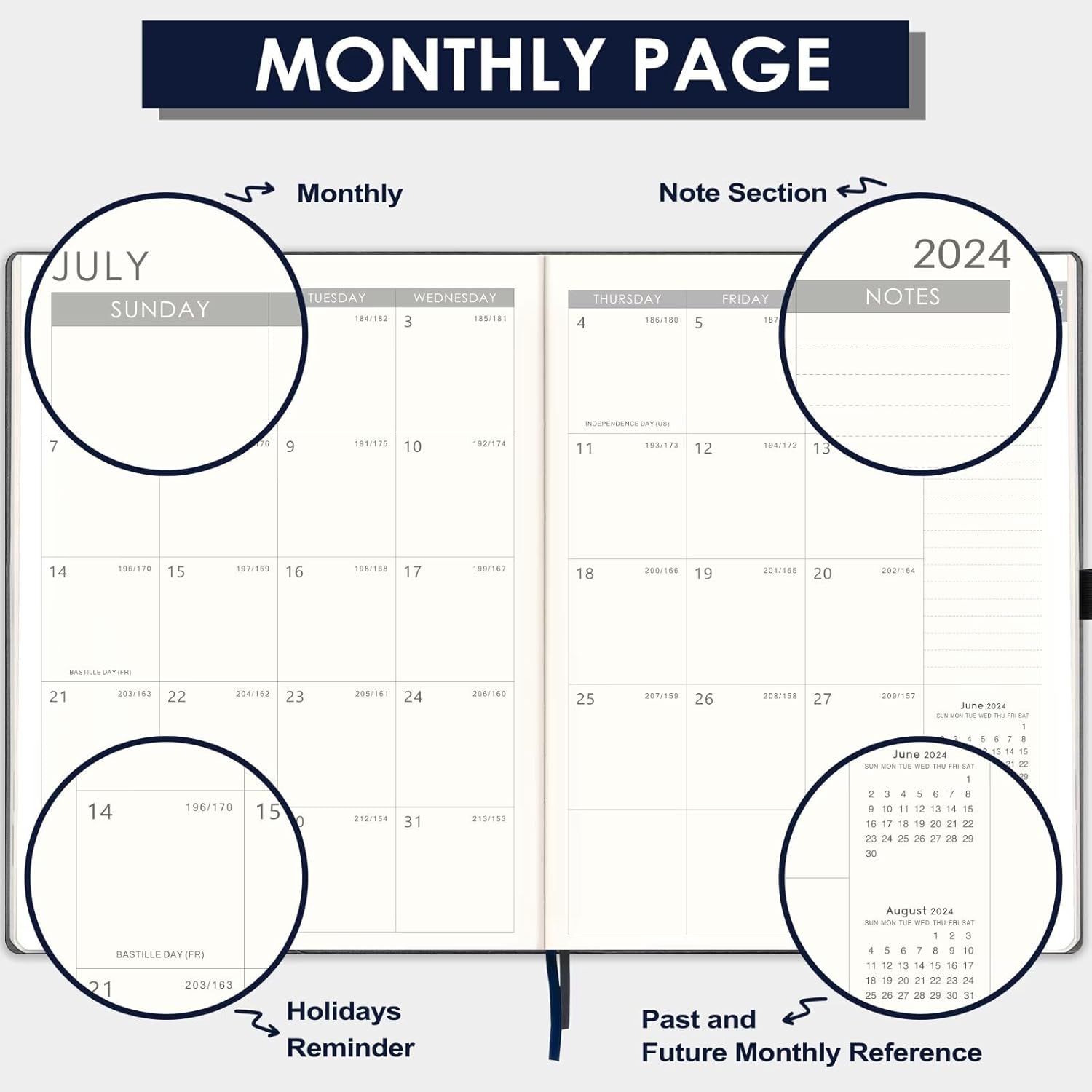 - 🍭 Durable soft leather cover, excellent texture. 2024-2026 yearly holidays lets you master the holidays clearly. The planner offers unruled monthly pages/ruled weekly layouts for detailed planning.