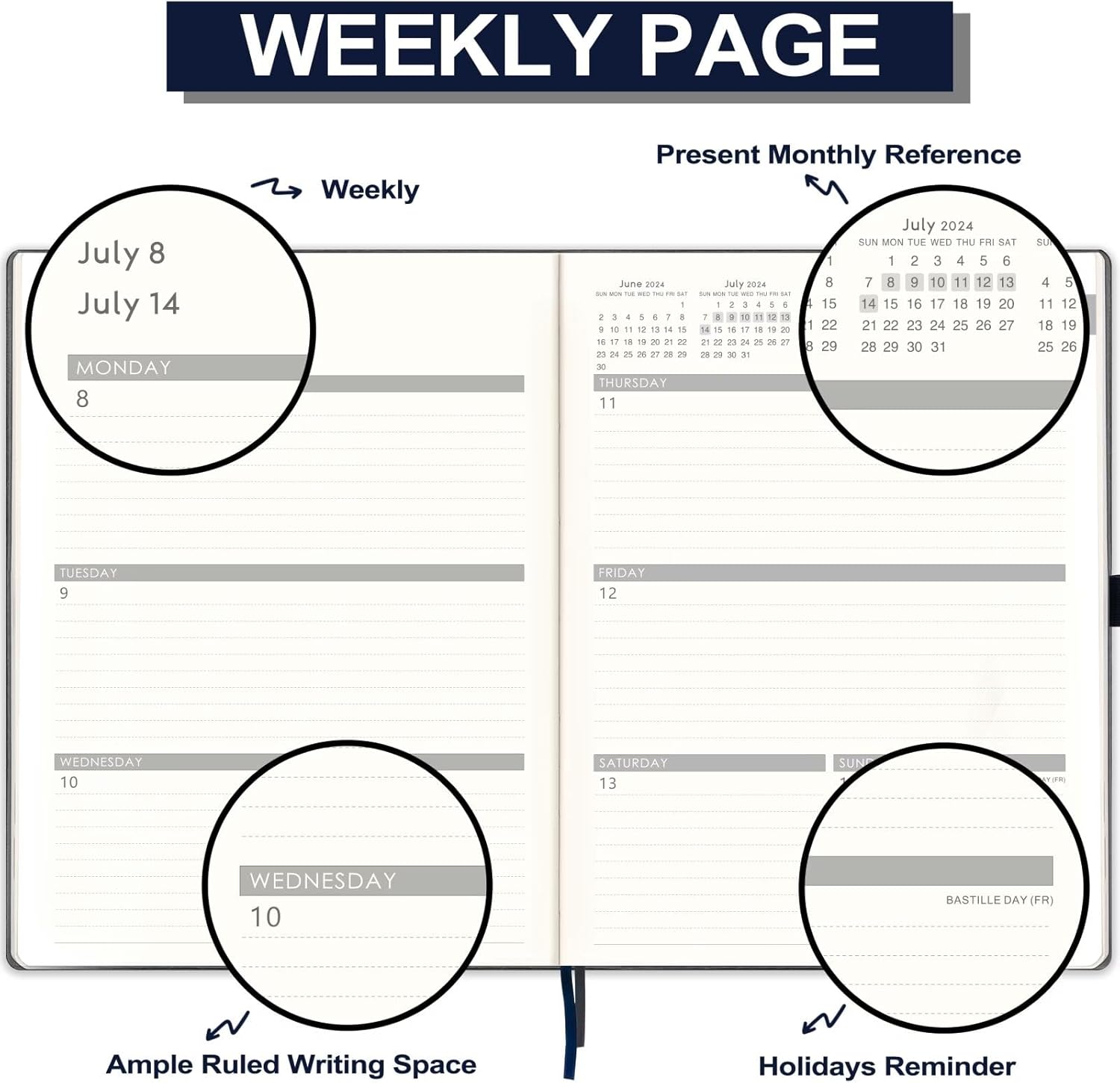 - 🍭 The elastic closure of planner 2024-2025 keeps it securely closed | The elastic pen loop is always available for your pen | held well | You can make a better mark with 2 bookmarks | calendar stickers | Exquisite box | Inner pocket, it is convenient for you to pack business cards stickers - 8" x 11".