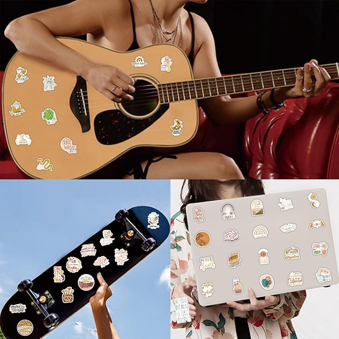 - Wide Usage. These vinyl inspirational stickers are super lively and interesting, suitable for tailor-made for laptops, MacBook, suitcases, luggage, helmets, cars, motorcycles, snowboards, PS4, bicycles, phone cases, surfboards, computers, lunch boxes, skateboards, guitars, scrapbooks and any surface you want to adorn. Elevate your style and stand out everywhere you go