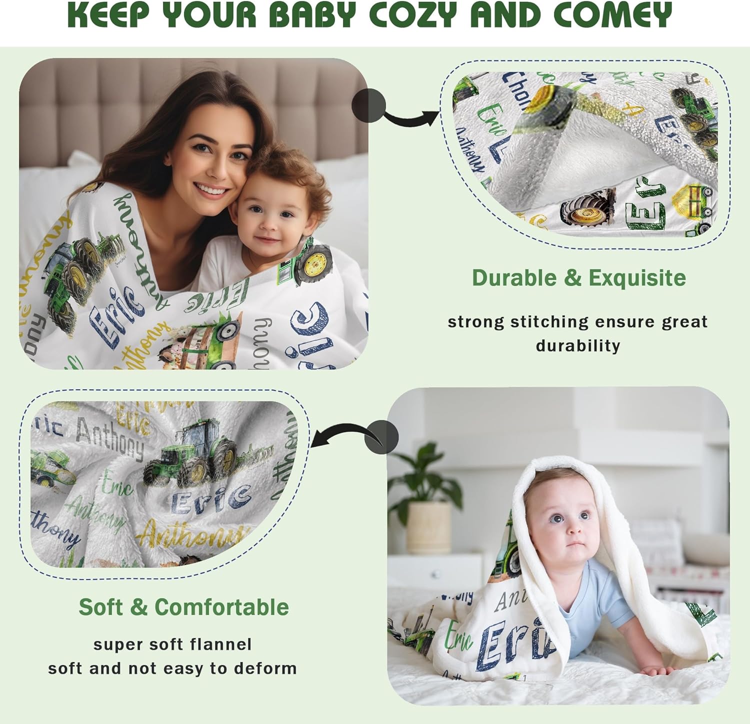 - Personalized Graphics: Blanket with adorable farm tractor pattern design,If your child loves farm tractor this would be the best choice! AP13