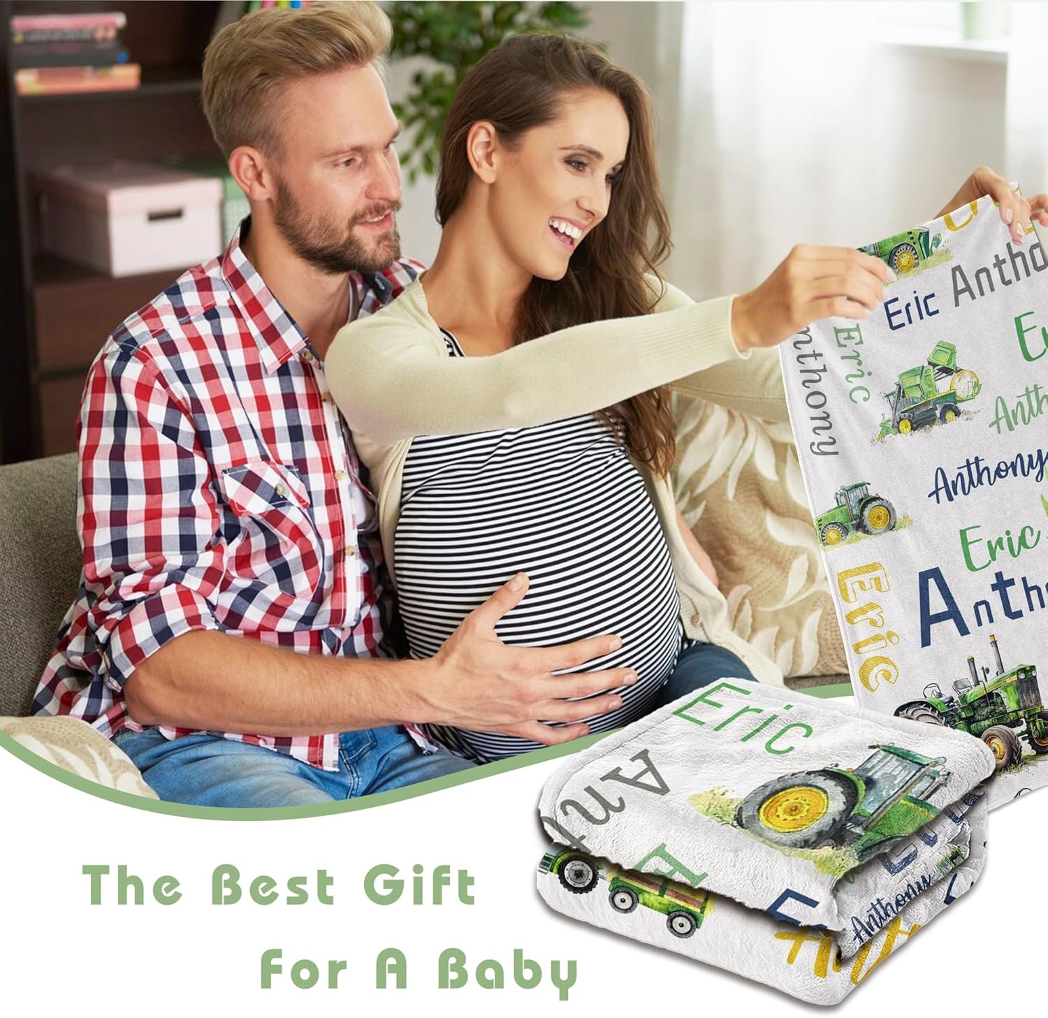 Personalized Blanket for Boy Newborn Custom Tractor Baby Blanket with Name Customized Gift for Baby Shower Christmas Birthday Gifts