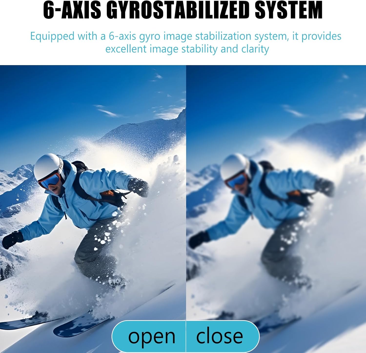 - Advanced 6-Axis Gyro Stabilization – Say goodbye to shaky footage! The built-in 6-axis gyro stabilizer ensures ultra-smooth video, even in extreme conditions—ideal for fast-paced sports like skiing, surfing, and mountain biking.