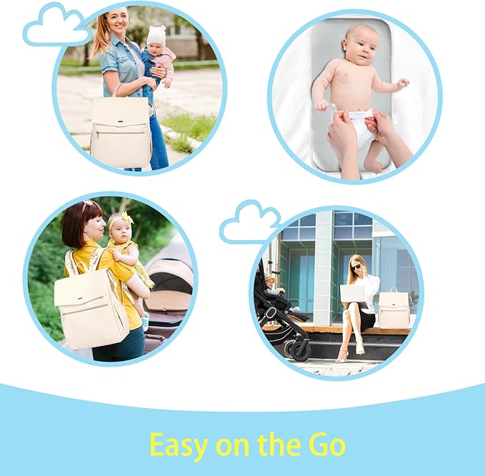 - HUMANIZED DESIGN: The baby diaper bag comes a large portable easy to clean and foldable diaper changing pad made of soft and safe material (Size: 25.2"x13.78") and stroller buckles to fix on the stroller easily which can meet all your needs when you are on the go with your baby; free mom's hands and make it easier