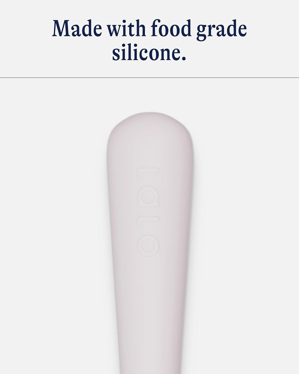 Lalo 2-Piece Baby Spoons Set - Lavender Silicone, Dishwasher Safe, Ages 4 Months+