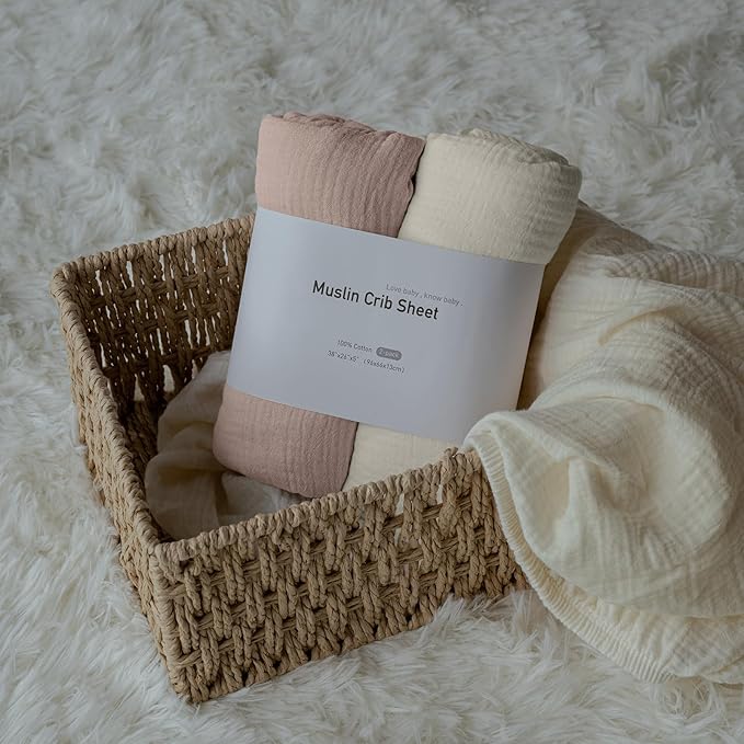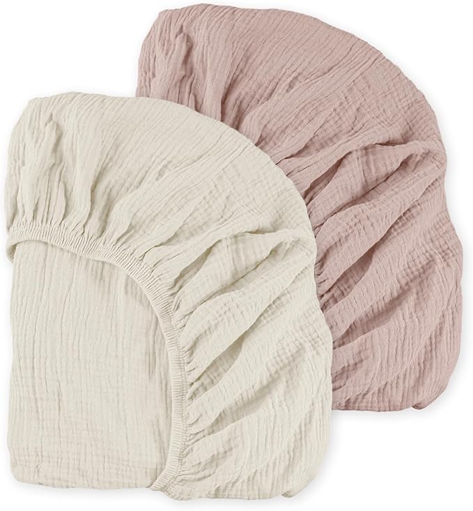 - ESSENTIALS BABY SHOWER GIFT: Each Mini Crib Sheets set are well made and neatly packaged. These durable soft muslin Mini Crib Sheets can be a practical and thoughtful gift for baby shower, baby registration, Christmas, home heating or any special gift giving occasion.