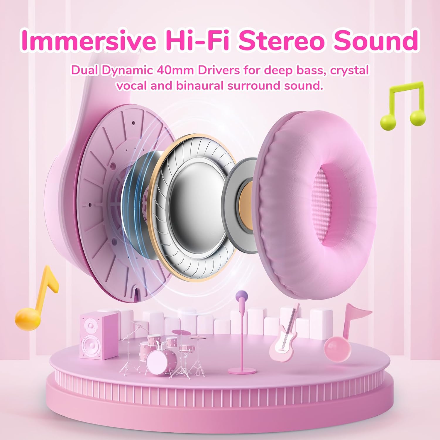 - [Immersive Hi-Fi Stereo Sound] Equipped with 40mm dynamic driver, the wired headphones offer an exceptional audio experience with deep bass, crystal vocal and immersive stereo sound. Your kids can dive into their favorite music, movies with vibrant sound that enhances every moment.