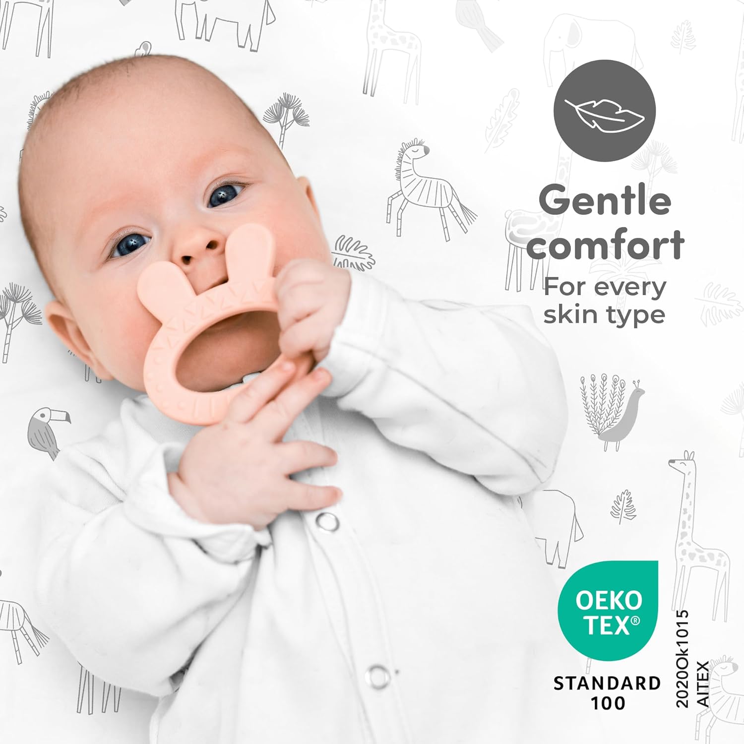 - Soft & Gentle on Baby’s Skin: Crafted from 100% premium jersey cotton, these crib sheets offer a soft and breathable surface, ideal for keeping your baby comfortable during sleep. The fabric is gentle on even the most sensitive skin, making it perfect for newborns and toddlers alike.