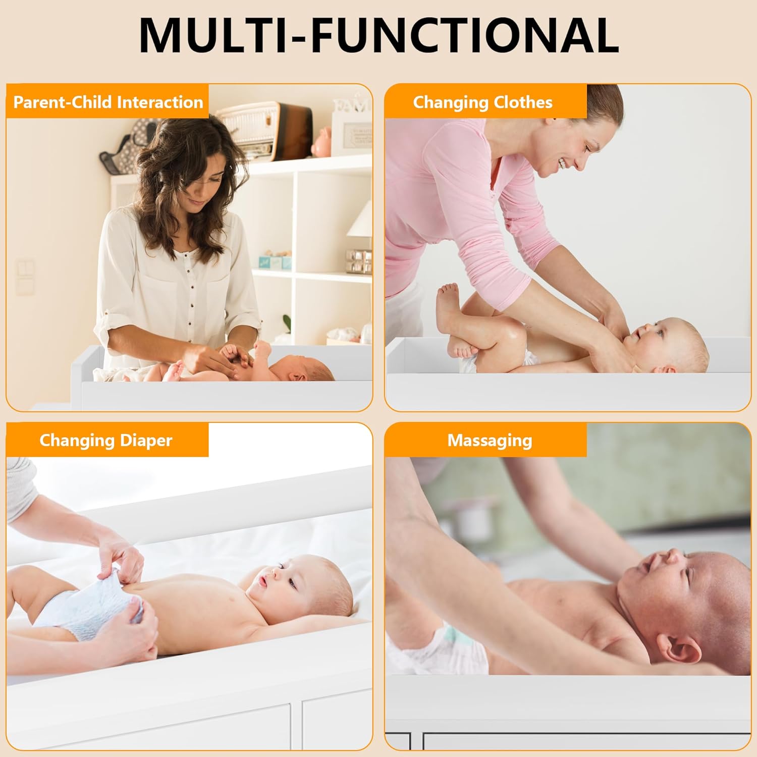 - 【Modern and Elegant Design】Enhance your space with this changing table dresser featuring gold handles, exuding a chic and refreshing aesthetic that effortlessly blends into any room, from bedrooms to offices. This versatile piece serves as a clothing organizer, vanity, or storage cabinet, elevating your decor with a sleek modern touch.