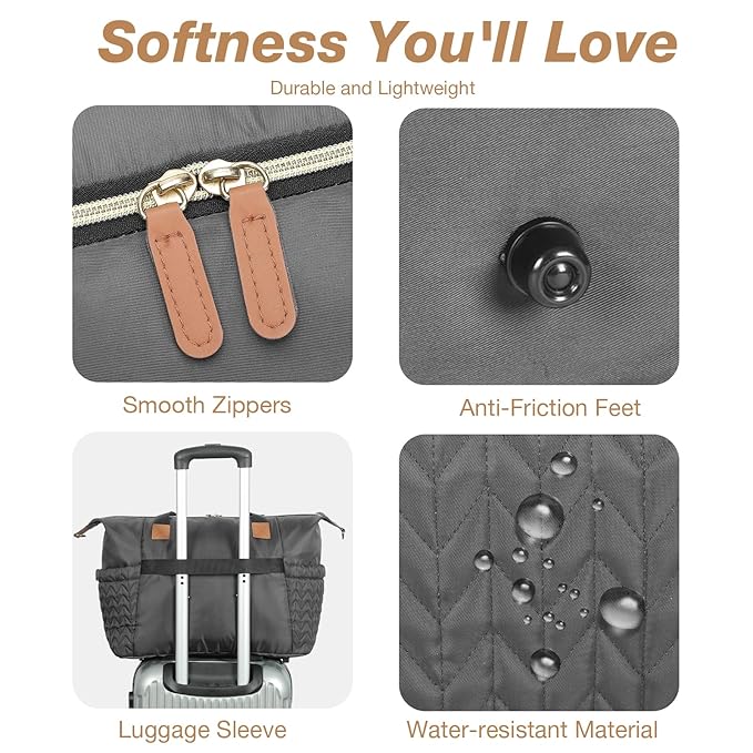 - Quilted Materials:Tonyeee diaper bag with 3D herringbone nylon quilting,achieve a perfect blend of practicality and fashion. While studded feet in the bottom keep the bag clean and off the ground