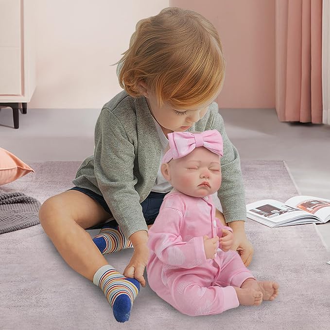 - Dreamy Innocence: Meet our delightful lifelike reborn baby girl, resting peacefully with her eyes gently closed. The reborn baby doll’s tranquil demeanor invites your child into a world of imaginative play, fostering a nurturing spirit that encourages love and care.