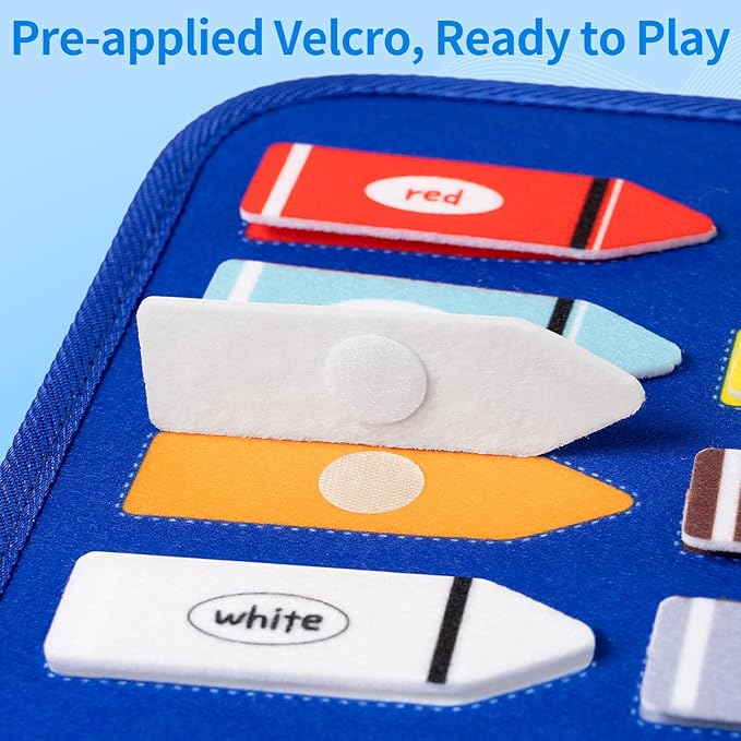 - 【Pre-attached Velcro, Easy to Operate】The Issray busy board Montessori toys are designed for little hands. This Montessori busy book is well-structured, with all Velcro stickers properly attached to their respective parts. Compared to other similar products, it saves you several hours of having to stick on the Velcro yourself. In addition, you can work with your child on the educational toddler busy board and teach them spelling, counting, and matching to help kids develop cognitive awareness.