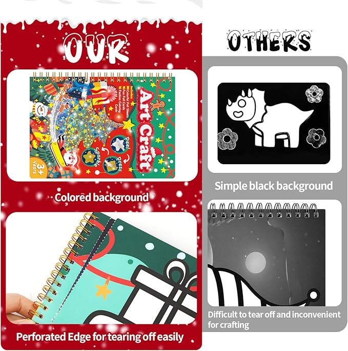 - Complete Crafting Set for Hours of Xmas Fun - Our value-packed kit includes everything your child needs to create stunning Christmas foil paper art: 16 foil paper art cards, 16 coloring cards, 80 vibrant foil sheets, and a wooden stick. The included instruction in the notebook makes it easy for kids to dive right into the fun, ensuring endless crafting adventures.