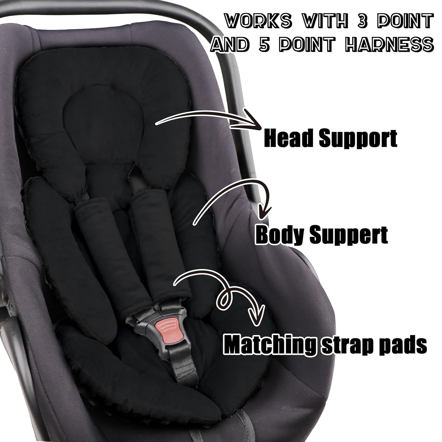 Infant Car Seat Insert Head and Body Support, GFU Reversible Newborn Insert for Carseat with Strap Pads, Soft Stroller Cushion Pillow Insert for Boys and Girls, Fits for Stroller, Swing, Black