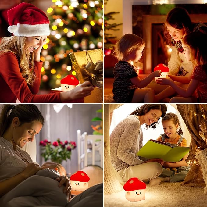 - Squishy & Soft - The mushroom night light is made of soft silicone, which is squishy, smooth, and drop-proof. Lightweight, super cute, and the light is soft and warm. Good helper for stress reduction. It is elastic, can be kneaded at will, and will return to its original shape. It is very giftable with a cute little illustrated box