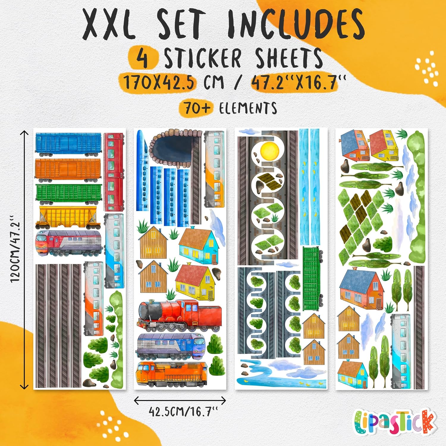 Train Wall Decals for Kids by Lipastick - Educational Railroad Wall Stickers for Boys and Girls - Peel and Stick Locomotive, Carriage, Wagon Wall Decals for Nursery, Playroom, Bedroom Decor -XXL Size