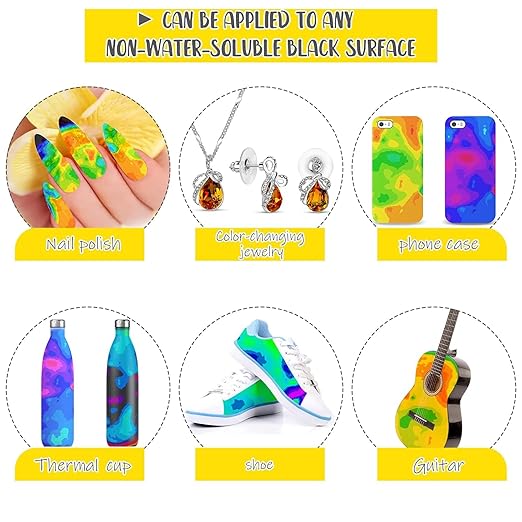 - Widely applicable: these 6 colors changing sheets can be applied for most black surface that is not water soluble, such as cups, mouse, keyboard, etc., showing your personality fully; This sheet can produce multi color changes within a fixed temperature range, so they can also be applied for science experiments