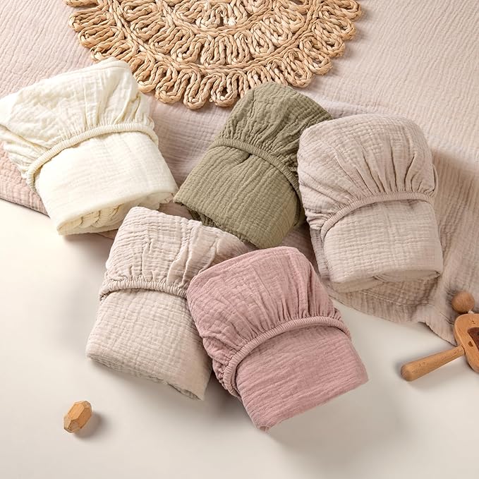 - Premium Soft Material: The bassinet sheets woven from 100% natural muslin cotton. Tender, breathable softer muslin fabric providing a gentle touch on the baby's delicate skin, and promoting a cozy and peaceful environment.