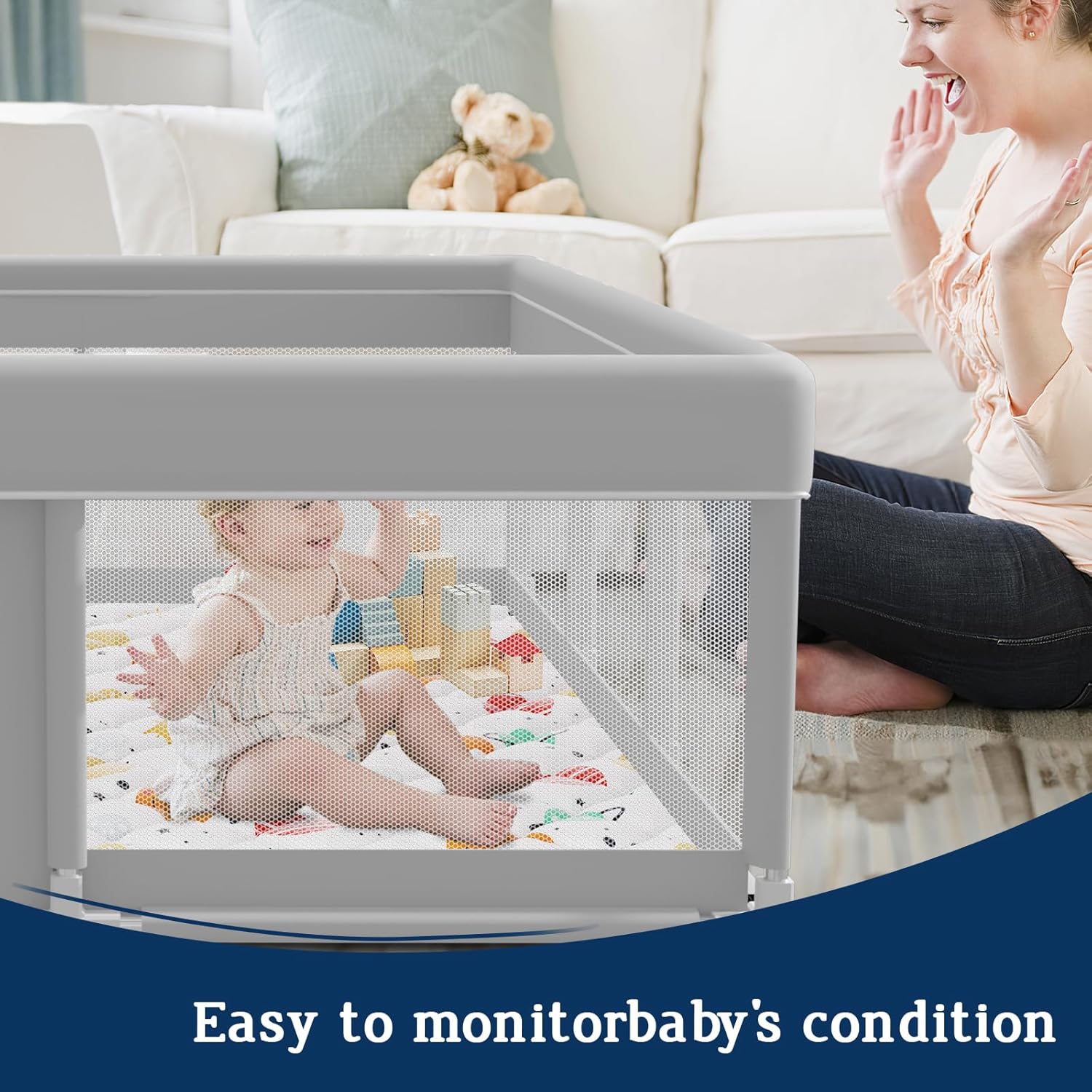 - 【PLAYPEN WITH MAT】This Jaobeem baby playpen comes with a thick waterproof and anti-slid mat, as well as with funny animal printed. Give your baby a funny comfortable game area to play and explore the world.