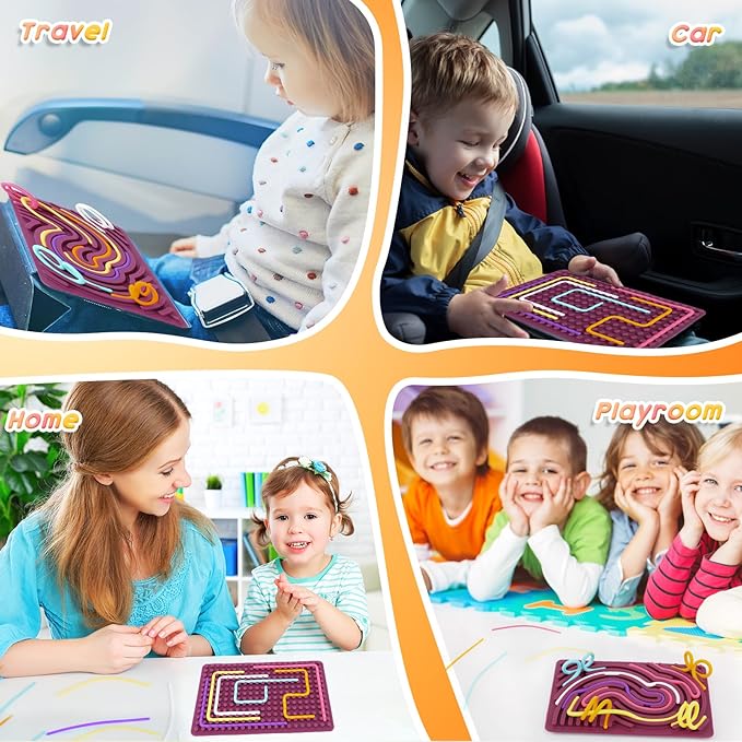 - Stress Relief: This autism sensory toys boasts vibrant colors and visually appealing effects, specifically designed to ease stress and enhance focus, excellent for sufferers of ADHD, Autism or Anxiety. You can place the silicone strings in the groves in any configuration you want, even make loops like in the pictures. It’s a perfect quiet activity