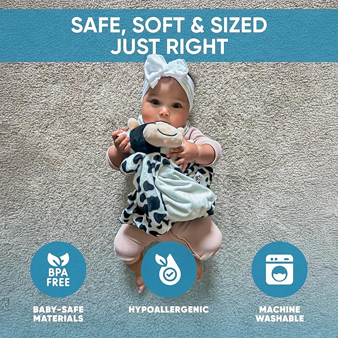 Baby Sleep Soother Black & White Cow Plush with Heartbeat & Lullaby Sounds, 4-in-1 Sound Machine, Security Blanket & Pacifier Holder, Baby Registry Essential & Christmas Gift for Newborns & Infants
