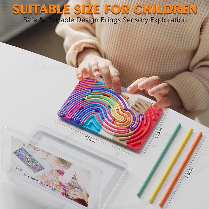 - 【Safe And High Quality】The sensory activity board toys are made of high-quality non-toxic silicone, and the materials are all high-quality, durable and odorless, and have obtained the Children's CPC certification to ensure safety for children. The two sides of the sensory board are designed with different patterns, providing children with two ways to play. If the toy is dirty, you can wash it with water or washing machine.