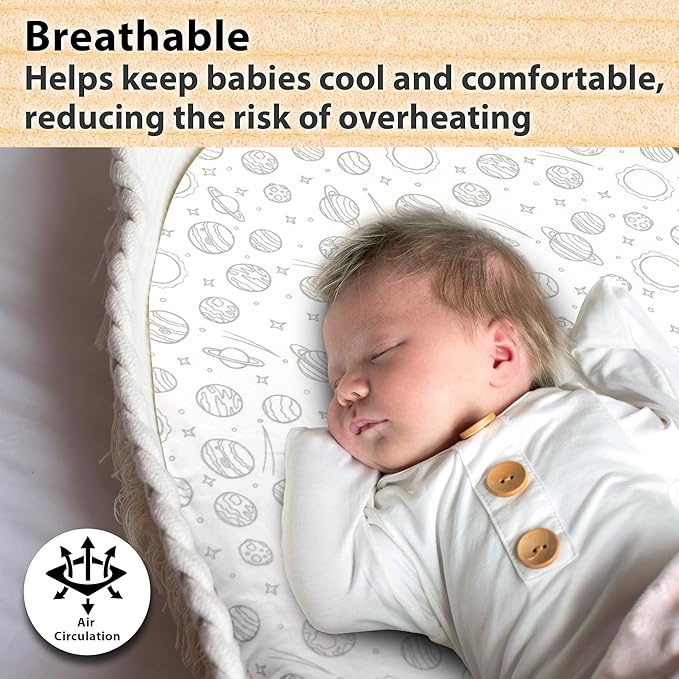 - Carefully Selected Materials: Our newborn bassinet sheets are crafted with high-quality 100% organic jersey cotton, a durable material that’s incredibly soft, breathable and comfy! The baby bassinet sheet is also easy to clean and will maintain its vibrant colors over time!