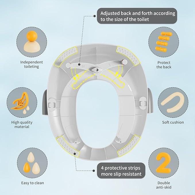- SAFE AND STURDY TODDLER POTTY SEAT: Whatever, safe is to be first. By using environmental PP material, this potty training toilet is sturdy and can even hold up to 165 lbs, The handle of the toddler toilet seat makes you worry free even when your kids use it alone