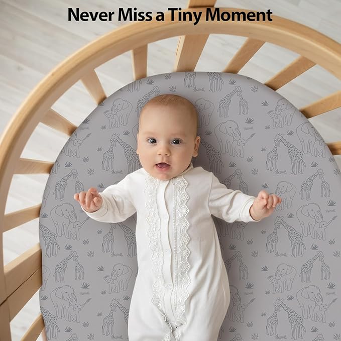 Baby Bassinet Sheets Girl Boy, Fitted Bassinet Sheet Set 3 Pack Bassinet Mattress Sheets Universal Fit for Rectangle, Round, Oval, Hourglass Mattress, Soft Breathable Elephant