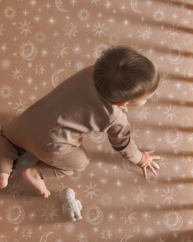 Pack and Play Sheets Fitted 3 Pack, Mini Crib Sheets for Pack N Play Mattress Stretchy Portable Playard Sheets, Soft Breathable White Brown Sun God