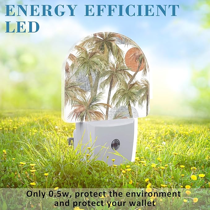 - [Dusk to Dawn Sensing]: Watercolor Abstract Tropical Jungle Night Light equipped with a dusk to dawn sensing function, it will automatically turn on at night or in a dimly lit environment, and automatically turn off in the morning or in sufficient light. This smart sensor design saves power and is convenient, so you don't need to switch manually.