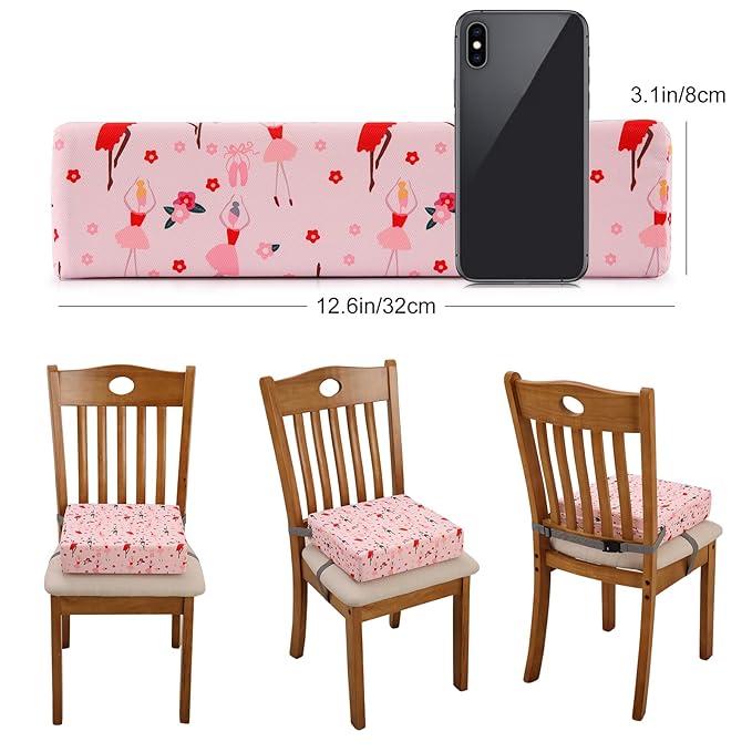 - Safety & Non-Slip: This booster seat for kitchen chair equipped with double straps, can be attached under and behind the chair to ensure stability and prevent slipping when sitting. Adjustable Belt ((20''-30''),fits most dining chairs