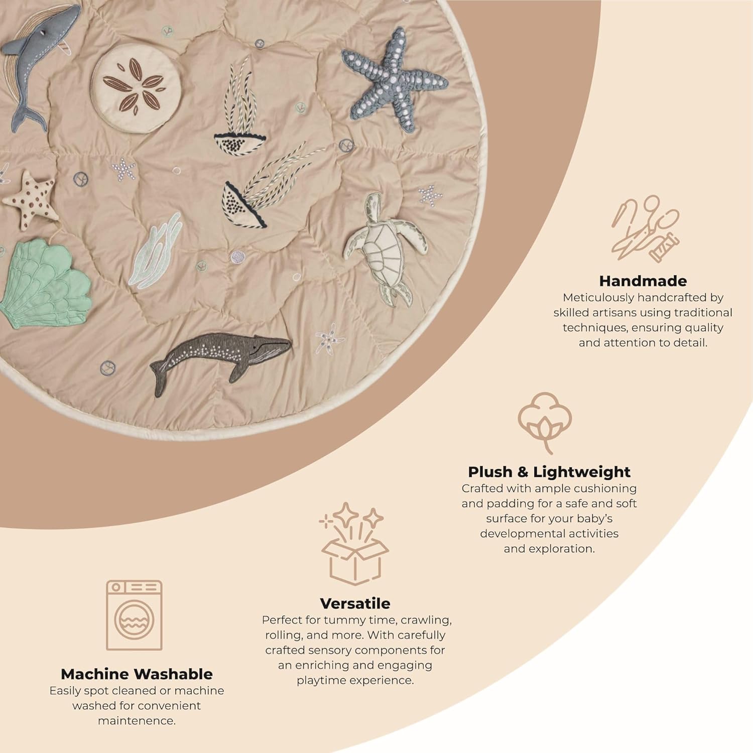 - Soothing Sea Life Theme - Our sea life playmat is a perfect addition for either a baby boy nursery or baby girl nursery, and fits in seamlessly with any ocean nursery decor or under the sea nursery