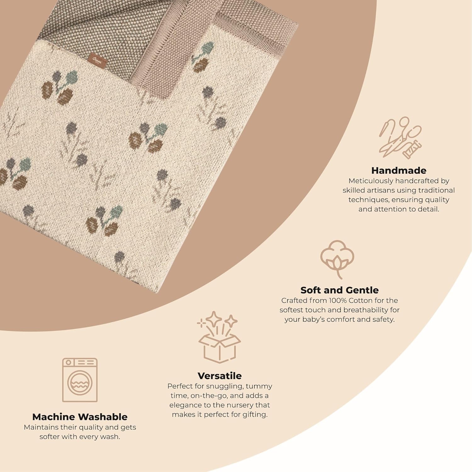 - HANDMADE QUALITY: Handmade with love, our Organic Cotton Baby Blanket reflects a level of craftsmanship that ensures durability and longevity. The use of traditional techniques and ethically sourced materials not only enhances the quality of this organic cotton blanket but also supports sustainable practices.