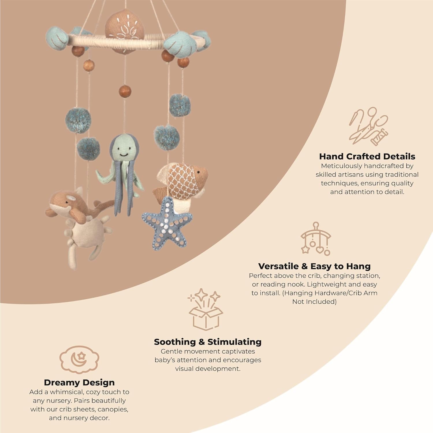 - Verstatile Design For All Nurseries - Suitable as both boy nursery and baby girl room decor, this adorable ceiling hanging enriches any nursery with its unisex ocean theme and playful animal figures