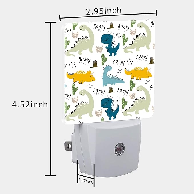 - [Dusk to Dawn Sensing]: Childish Cute Dinosaur Night Light equipped with a dusk to dawn sensing function, it will automatically turn on at night or in a dimly lit environment, and automatically turn off in the morning or in sufficient light. This smart sensor design saves power and is convenient, so you don't need to switch manually.