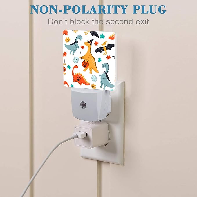 - [Night Light Socket Design]: This Halloween Cute Dinosaur LED night light can be directly plugged into the wall socket, which is convenient and practical. Its compact design doesn't take up much space and can easily provide soft lighting for your kids, baby room, stairs and more.