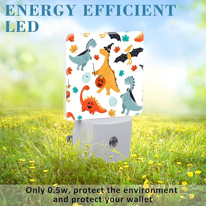 - [Dusk to Dawn Sensing]: Halloween Cute Dinosaur Night Light equipped with a dusk to dawn sensing function, it will automatically turn on at night or in a dimly lit environment, and automatically turn off in the morning or in sufficient light. This smart sensor design saves power and is convenient, so you don't need to switch manually.
