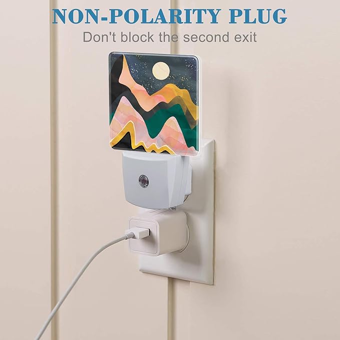 - [Night Light Socket Design]: This Abstract Mountains Night Sky and Moon LED night light can be directly plugged into the wall socket, which is convenient and practical. Its compact design doesn't take up much space and can easily provide soft lighting for your kids, baby room, stairs and more.