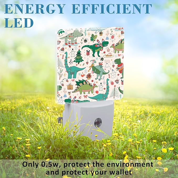 - [Night Light Socket Design]: This Cute Dinosaur Christmas LED night light can be directly plugged into the wall socket, which is convenient and practical. Its compact design doesn't take up much space and can easily provide soft lighting for your kids, baby room, stairs and more.