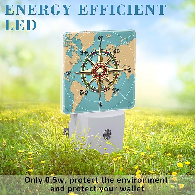 - [Night Light Socket Design]: This Classic Vintage Nautical Wind Compass LED night light can be directly plugged into the wall socket, which is convenient and practical. Its compact design doesn't take up much space and can easily provide soft lighting for your kids, baby room, stairs and more.