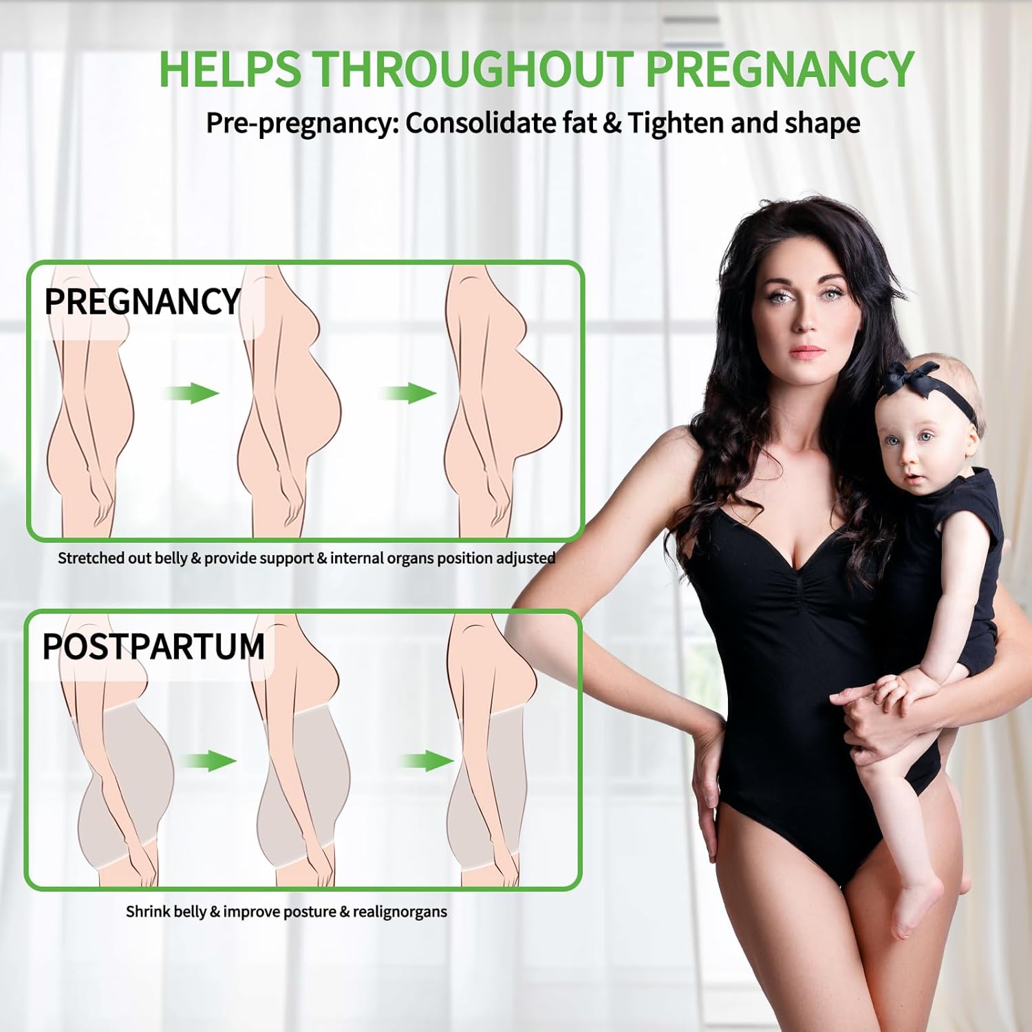 - 360° Adjustable: 4 rows of reinforced patches & side fine-tuning buckles, free control of waist circumference/pressure, suitable for the needs of late pregnancy, postpartum, and the entire fitness cycle