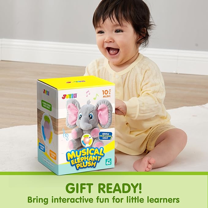 JOYIN Musical Elephant Plush Baby Toy, Stuffed Animal with Music & Light, Baby Musical Soft Plush Toys for Infant Babies, Christmas Birthday Gifts for Boys and Girls 6+ Months