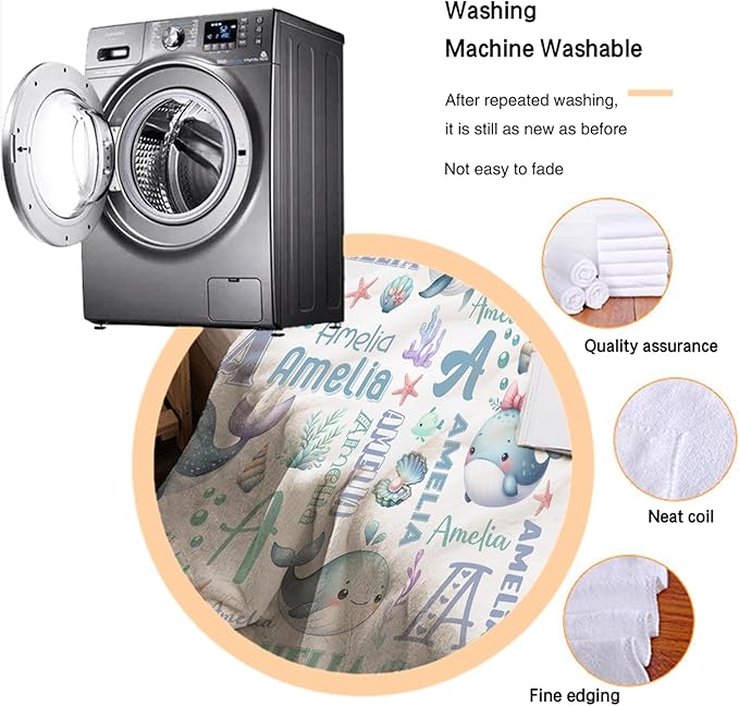 - 【Reminder】 Clear cute pattern with vivid colors expresses the pattern content of custom baby Whales very well. This blanket is printed on one side, the unprinted side is white. If you have any questions about the personalized name blanket, please feel free to contact us Contact us and we will resolve the issue immediately.