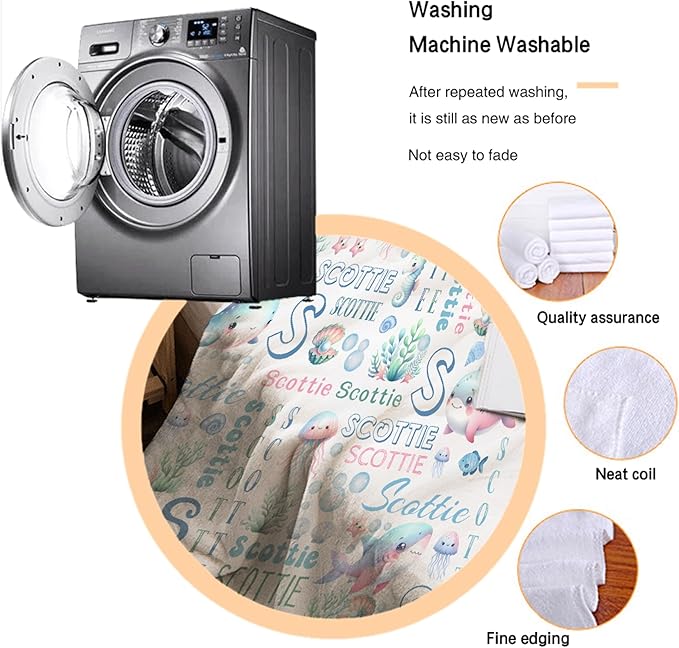 • 【Reminder】 Clear cute pattern with vivid colors expresses the pattern content of custom baby Oceans Shark very well. This blanket is printed on one side, the unprinted side is white. If you have any questions about the personalized name blanket, please feel free to contact us Contact us and we will resolve the issue immediately.